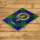 Clan MacKay crest badge surrounded by a strap and buckle over tartan background. Custom text.