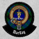 Clan MacKay crest badge surrounded by a strap and buckle over tartan background. Custom text.