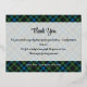 Clan MacKenzie crest badge surrounded by a strap and buckle over tartan background. Foil printed thank you card. Custom text.