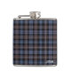 Monogrammed flask with the weathered tartan for Clan Mackenzie and its septs, including MacCharles and Ure. Muted blue and brown reproduction Scottish plaid pattern from 1778, with black and gray accents.