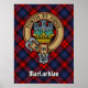 Clan MacLachlan crest badge surrounded by a strap and buckle over tartan background. Custom text.