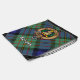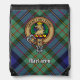 Clan MacLaren crest badge surrounded by a strap and buckle over tartan background. Custom text.