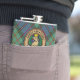 Well made flask, a little better than I had expected. Flask came in clear plastic box which gave it a nice presentation when I took it out of the zazzle packaging. Image is not printed on flask but on sticker. Don't know how this will hold up I haven't used it yet. This would make a Great gift! I plan to purchase more for friends! Cheers. I thought a little brighter than computer. Very crisp, writing wasn't