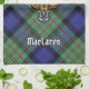 Clan MacLaren crest badge surrounded by a strap and buckle over tartan background. Custom text.