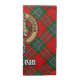 Clan MacLean crest badge surrounded by a strap and buckle over tartan background. Custom text.