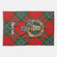 Clan MacLean crest badge surrounded by a strap and buckle over tartan background. Custom text.