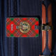 Clan MacLean crest badge surrounded by a strap and buckle over tartan background. Custom text on both sides.