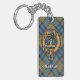 Clan MacLellan Crest over Ancient Tartan Keychain