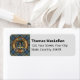 Clan MacLellan crest badge surrounded by a strap and buckle over ancient tartan background. Custom text fields for name and address.