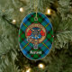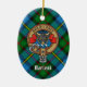 Clan MacLeod crest badge surrounded by a strap and buckle over green hunting tartan. Custom text on both sides.