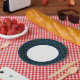 Paper plates with a border of the tartan for Clan MacLeod of Skye. Dark royal blue, green, and black Scottish plaid pattern with yellow and red accents. Available in two sizes.
