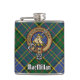 Clan MacMillan crest badge surrounded by a strap and buckle over hunting tartan. Custom text.