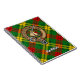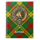 Clan MacMillan crest badge surrounded by a strap and buckle over tartan background. Custom text.