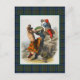 Postcard with a digitally cleaned and enhanced vintage watercolor illustration by Scottish artist Robert Ronald McIan, dated to 1845. Framed with the Clan MacMillan Hunting tartan, a traditional plaid pattern in green, royal blue, red, and yellow. Digital tartan image created by Susan Wallace of Plaidwerx using thread count provided by The Scottish Register of Tartans.