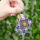 Clan MacPherson Crest over Blue Dress Tartan Keychain
