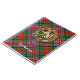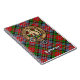 Clan MacPherson crest badge surrounded by a strap and buckle over tartan background. Custom text.