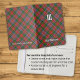Clan MacPherson crest badge surrounded by a strap and buckle over tartan background. Custom text. Personalize template for more. Delete crest and make visible the custom monogram for a formal look. Rotate tartan 135 degrees for a casual look.