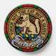 Clan MacPherson crest badge surrounded by a strap and buckle over tartan background. Custom text.