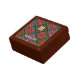 This product is made with beautiful mahogany wood, the inside is lined with white satin. The hinges are very sturdy and keeps a tight close on the box. The pattern tile is wonderful It's truly is an exquisite product. This is a gift for anyone and for any occasion. A fine wooden piece to display on your furniture anywhere in your home. The printing accented the design on the box very well. Very pleased with the Font.