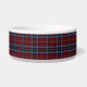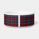 Stylish dog food dish with the red, blue, and black clan MacTavish tartan plaid pattern, around the dish, and an oval black text area, in the middle, for your pet's name. White text allows you to customize with your pet's name, for a personalized bowl your canine friend can be proud of.