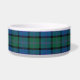 Stylish dog food dish with the colorful clan MacThomas tartan plaid pattern, around the dish, and an oval black text area, in the middle, for your pet's name. White text allows you to customize with your pet's name, for a personalized bowl your canine friend can be proud of.