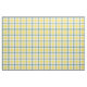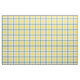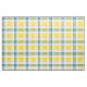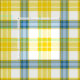 Fabric in the family tartan for Clan McGrath, a traditional plaid pattern in bright yellow, creamy white, and sky blue with dark blue accents. Pattern repeats every 4". Special order smaller or larger scale via https://plaidwerx.com/contact.htm