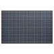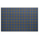 Fabric in the family tartan for Clan Minnock, a traditional Scottish plaid pattern from 2009 in royal blue, green, and black with bright red and yellow accents. Pattern repeats every 4". Special order smaller or larger scale via https://plaidwerx.com/contact.htm