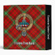 Morrison red tartan. Seamless background pattern. Custom front text and monogram. Custom spine and back text. Clan crest at the back side.