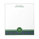Personalized note pad with a plaid border and monogram. Features the Clan Murray tartan, dated to 1831. Traditional Scottish plaid pattern in shades of blue and green with black and red highlights.