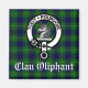 Scottish Clan Oliphant crest badge and text on tartan background