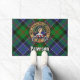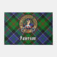 Clan Paterson crest badge surrounded by a strap and buckle over tartan background. Custom text.