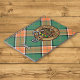 Clan Pollock crest badge surrounded by a strap and buckle over tartan background. Custom text.