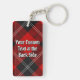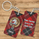 Clan Ramsay crest badge surrounded by a strap and buckle over red tartan background. Custom text on both sides.
