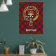 Clan Robertson crest badge surrounded by a strap and buckle over tartan background. Custom text.