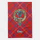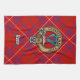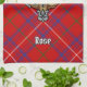 Clan Rose crest badge surrounded by a strap and buckle over tartan background. Custom text.