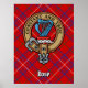Clan Rose crest badge surrounded by a strap and buckle over tartan background. Custom text.
