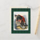 Postcard with a digitally cleaned and enhanced vintage watercolor illustration by Scottish artist Robert Ronald McIan, dated to 1845. Framed with the Clan Ross Hunting tartan, a traditional plaid pattern in bright green, red, and black. Digital tartan image created by Susan Wallace of Plaidwerx using thread count provided by The Scottish Register of Tartans.