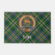 Clan Scott crest badge surrounded by a strap and buckle over green tartan background. Custom text.