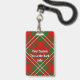 Clan Scott crest badge surrounded by a strap and buckle over red tartan background. Custom text.