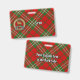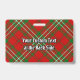 Clan Scott crest badge surrounded by a strap and buckle over red tartan background. Custom text on both sides.