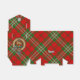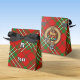 Clan Scott crest badge surrounded by a strap and buckle over red tartan background. Custom text and monogram.