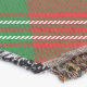 Clan Scott crest badge surrounded by a strap and buckle over red tartan background. Custom text.
