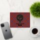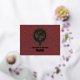 Clan Sinclair crest badge surrounded by a strap and buckle over red tartan background. Foil printed thank you card. Custom text.