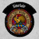 Clan Sinclair crest badge surrounded by a strap and buckle over red tartan. Custom text.