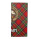 Clan Stewart or Stuart crest badge surrounded by a strap and buckle. Custom text.