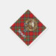 Clan Stewart crest badge surrounded by a strap and buckle over Royal tartan background. Custom text.
