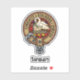 Clan Stewart or Stuart crest badge surrounded by a strap and buckle. Custom text.