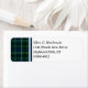 Return address labels with the family hunting tartan for Clan Stewart and its septs, including Lennox and Spruill. Classic Scottish plaid pattern in bottle green and dark blue, with bright yellow, red, and black accents. Matching envelopes and monogrammed stationery available.