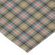 Traditional Scottish plaid pattern in shades of golden tan, mint green, and light red, with black and white highlights. Features colors representing organic dyes used in early textile production.