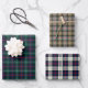 All occasion gift wrap in Clan Sutherland tartan variations. One sheet each of Clan Sutherland tartan (blue, green, and red plaid), Clan Sutherland Ancient tartan (tan, black, and mint green plaid), and Clan Sutherland Royal Dress tartan (royal blue, red, and white plaid). Choose from matte or semi-gloss paper